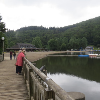 O 2 º dia em Murol foi para passear e conhecer, começando cedo por visitar o lago Lac Du Chambon, que é simplesmente lindo! Fizemos todo o caminho a pé até lá, pelo trilho assinalado. O caminho não é difícil, mas convém levar calçado apropriado, para além que que o piso é bastante escorregadio, pelo que não aconselho a levarem chinelos e a escolherem bem as sapatilhas. O tempo não estava muito favorável para tomar banho no lago e apesar de ser julho a temperatura não estava alta, pelo que aconselho sempre a levarem um casaco ou camisola. A maioria do caminho é feito por floresta, com algumas subidas acentuadas, mas vale muito a pena!
